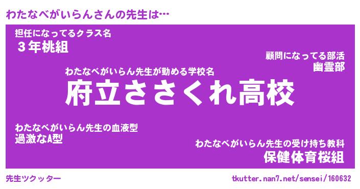 | ヘコむあだ名 | 『わたもー』『レバニラ』 |