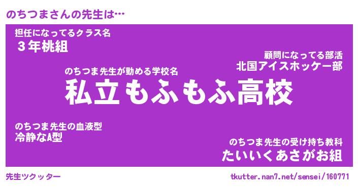 | ヒーロー風カッコイイあだ名 | 『スーパーノチツマ』『魔戒騎士ノチ』 |