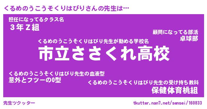 | ヘコむあだ名 | 『くるもー』『レバニラ』『くるっ子』 |