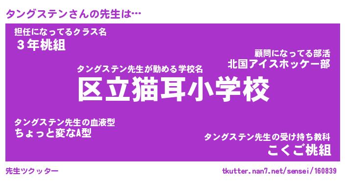 | 恥ずかしいあだ名 | 『プリティータングステン』『タンっちょ』 |
