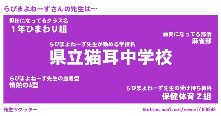 | 男性向けラノベタイトル風あだ名 | 『らぴまよねーずの憂鬱』 |