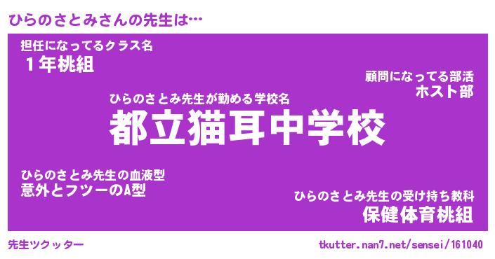 | 肩書あだ名 | 『ひらのさとみ社長』『ひらのさとみ担任』 |