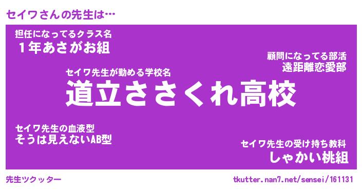 | ポケモン風あだ名 | 『セイチュウ』『セイワダネ』 |