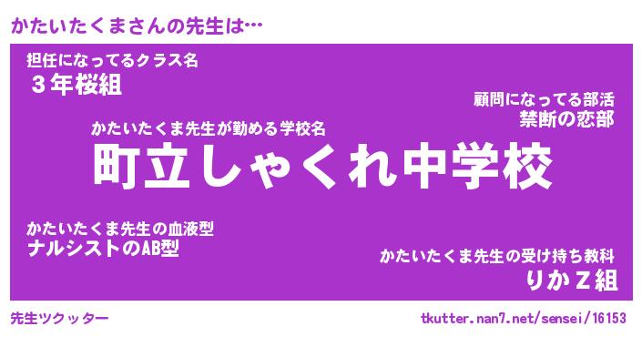 | ヒーロー風カッコイイあだ名 | 『スーパーカタイタクマ』『天弓騎士カタ』 |