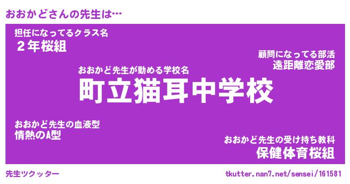 | 意味不明あだ名 | 『ペロリンおおかど』『永久保存おおかど』 |