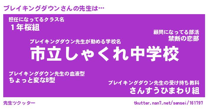 | 男性向けラノベタイトル風あだ名 | 『ブレイキングダウンの憂鬱』 |
