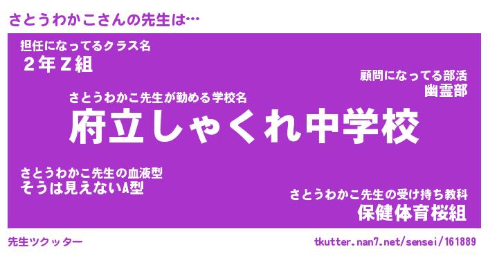 | 伝説のあだ名 | 『封印されしスナイパーさとうわかこ』 |