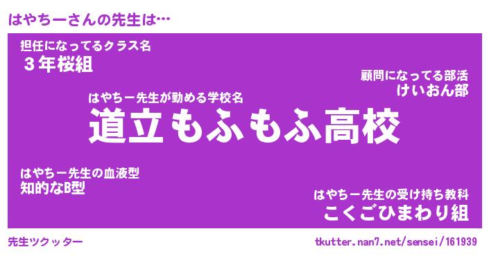 | 意味不明あだ名 | 『ペロリンはやちー』『永久保存はやちー』 |