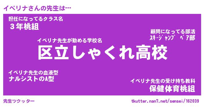 | 意味不明あだ名 | 『ペロリンイベリナ』『永久保存イベリナ』 |
