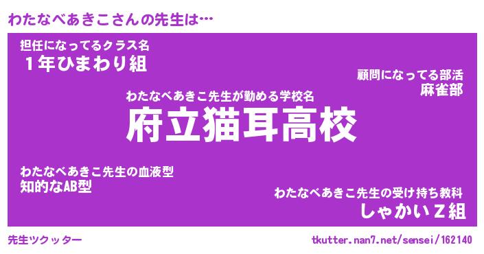 | ヘコむあだ名 | 『わたにー』『つくし』『わたを』 |