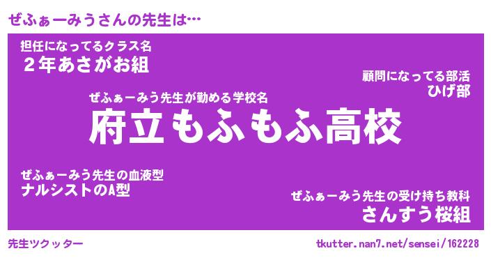 | ヘコむあだ名 | 『ぜふにゅー』『豆乳』『ぜふっちょ』 |