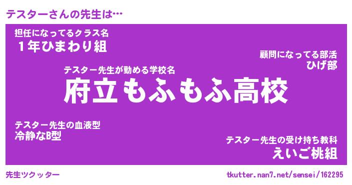 | ファンタジー風あだ名 | 『テスフェル』『エターナルテスターー』 |