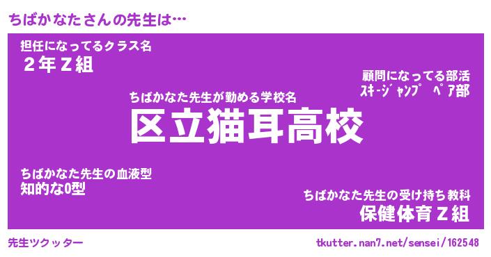 | ファンタジー風あだ名 | 『チバフェル』『エターナルチバカナター』 |