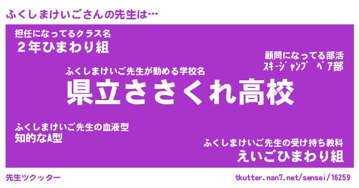 | 伝説のあだ名 | 『不死鳥のスナイパーふくしまけいご』 |