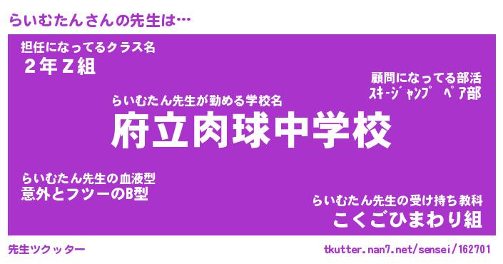 | ヘコむあだ名 | 『らいふぇ~』『なまこ酢』 |