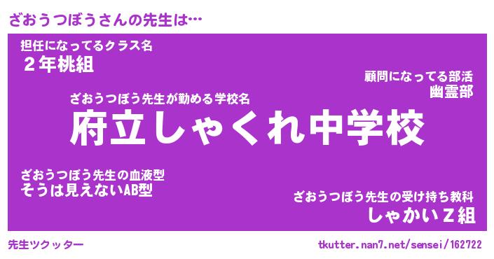 | ポケモン風あだ名 | 『ザオチュウ』『ザオウダネ』 |