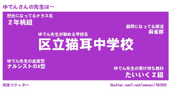 | ヒーロー風カッコイイあだ名 | 『スーパーユデン』『ウルトラゆでんマン』 |