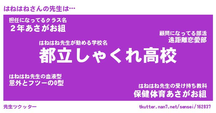 | ヒーロー風カッコイイあだ名 | 『スーパーハネハネ』『天弓騎士ハネ』 |