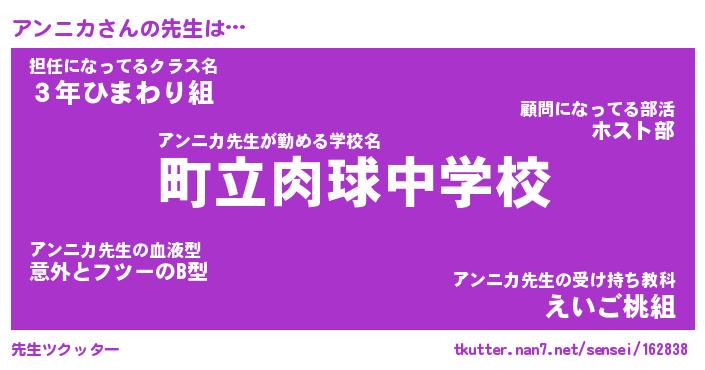 | 意味不明あだ名 | 『ペロリンアンニカ』『永久保存アンニカ』 |