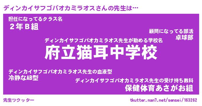 | 欧米人風あだ名 | 『マイケルディンカイサフゴパオカミラオス』 |