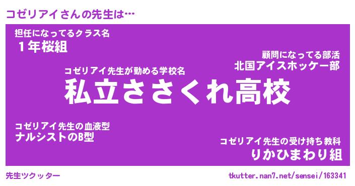 | ファンタジー風あだ名 | 『コゼフェル』『エターナルコゼリアイー』 |