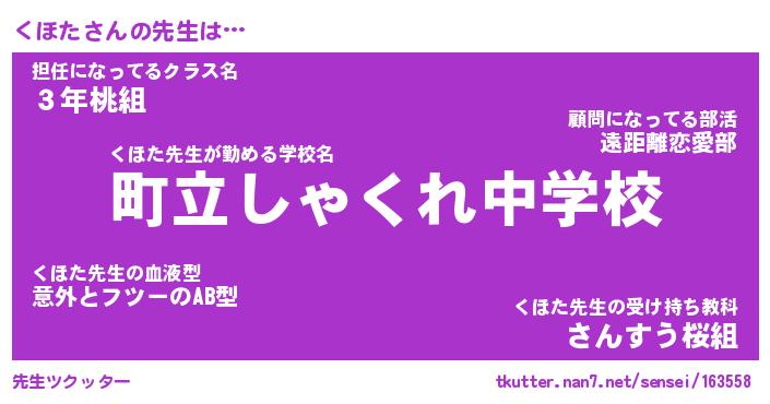 | ヘコむあだ名 | 『くほっふぃ~』『つくし』『くほお』 |