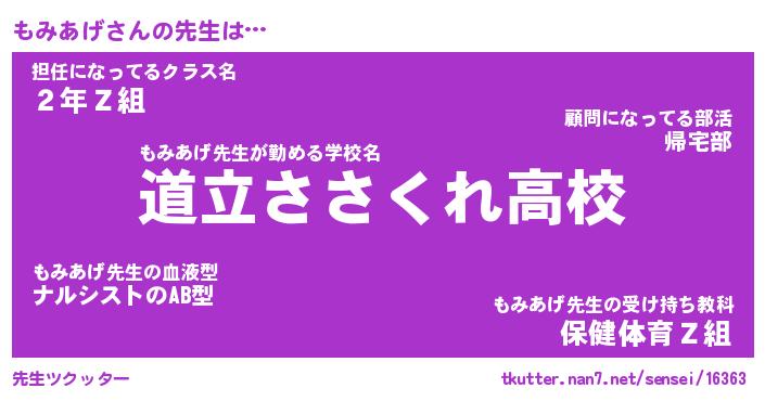 | ファンタジー風あだ名 | 『モミフェル』『エターナルモミアゲー』 |
