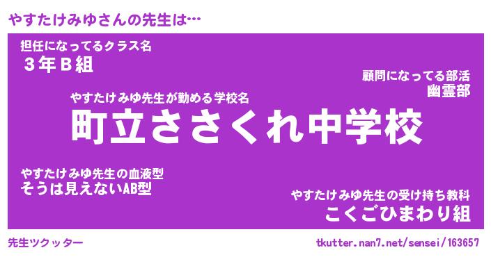 | 伝説のあだ名 | 『封印されしスナイパーやすたけみゆ』 |