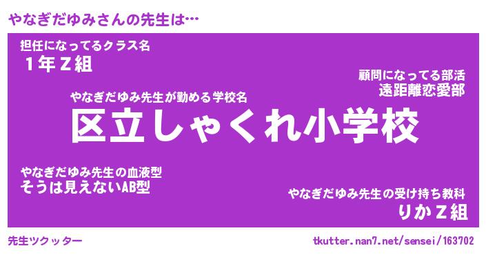 | 伝説のあだ名 | 『封印されしスナイパーやなぎだゆみ』 |