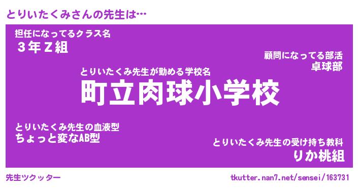 | ヒーロー風カッコイイあだ名 | 『スーパートリイタクミ』『暗黒騎士トリ』 |