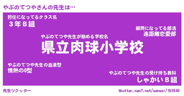 | ヒーロー風カッコイイあだ名 | 『スーパーヤブノテツヤ』『銀牙騎士ヤブ』 |