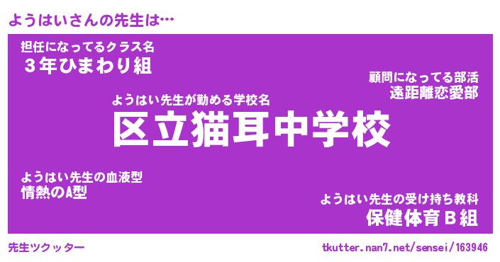 | ファンタジー風あだ名 | 『ヨウフェル』『エターナルヨウハイー』 |