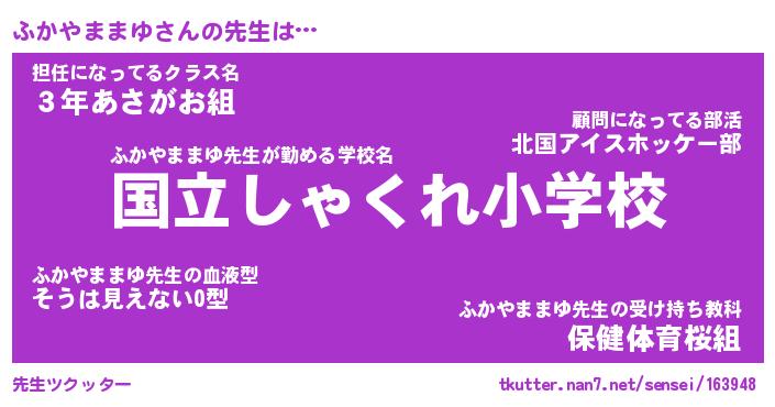| 伝説のあだ名 | 『伝説のスナイパーふかやままゆ』 |