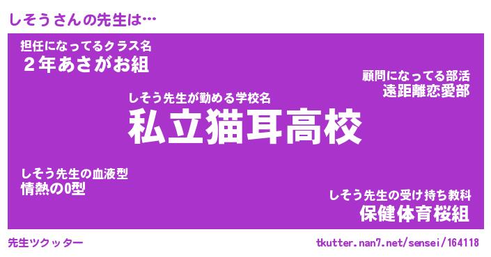 | ファンタジー風あだ名 | 『シソフェル』『エターナルシソウー』 |