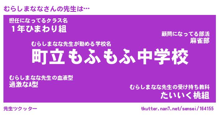 | ヒーロー風カッコイイあだ名 | 『スーパームラシマナナ』『魔戒騎士ムラ』 |