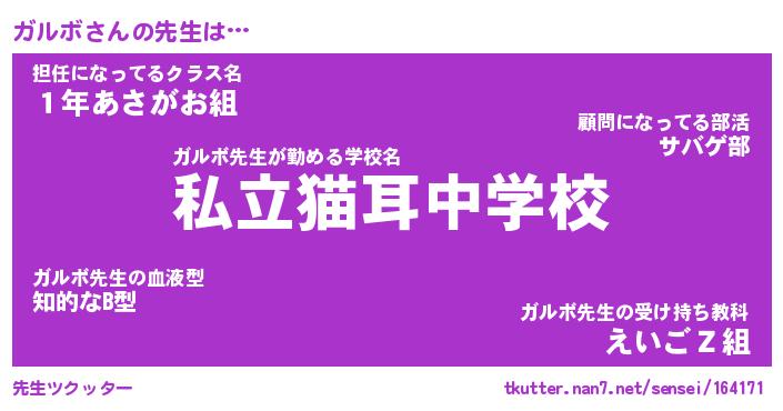 | 肩書あだ名 | 『ガルボ社長』『ガルボ総理大臣』 |