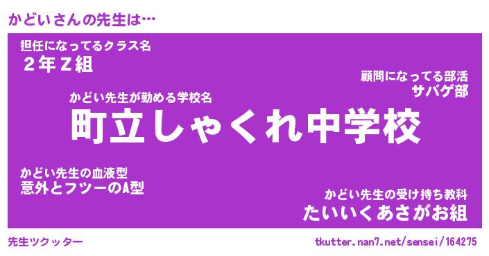 | ヒーロー風カッコイイあだ名 | 『スーパーカドイ』『ウルトラかどいマン』 |