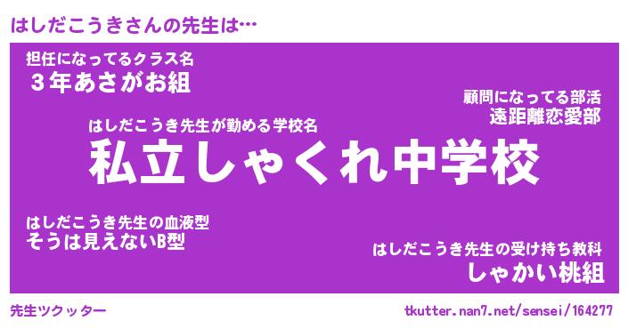 | 伝説のあだ名 | 『伝説のスナイパーはしだこうき』 |