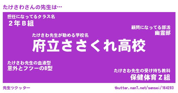 | ポケモン風あだ名 | 『タケチュウ』『タケサダネ』 |