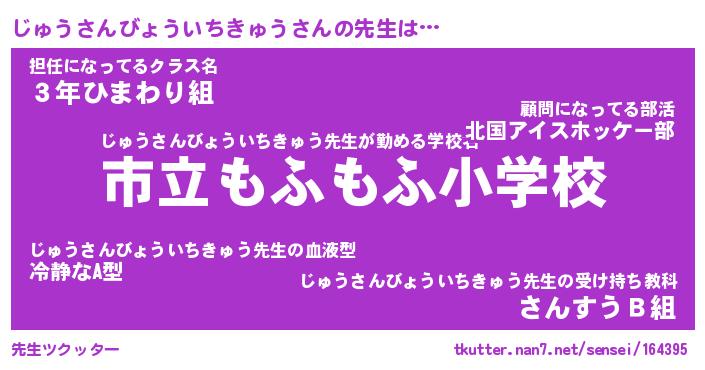 | ヘコむあだ名 | 『じゅにゅー』『つくし』『じゅお』 |