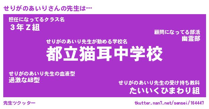 | ヘコむあだ名 | 『せりにー』『レバニラ』『せり太郎』 |