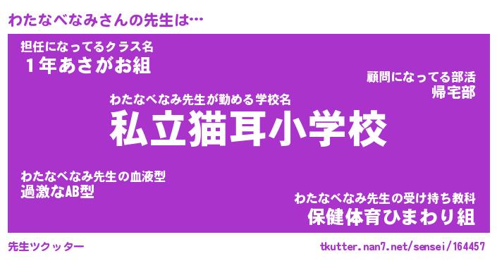 | 肩書あだ名 | 『わたなべなみ社長』『わたなべなみ班長』 |