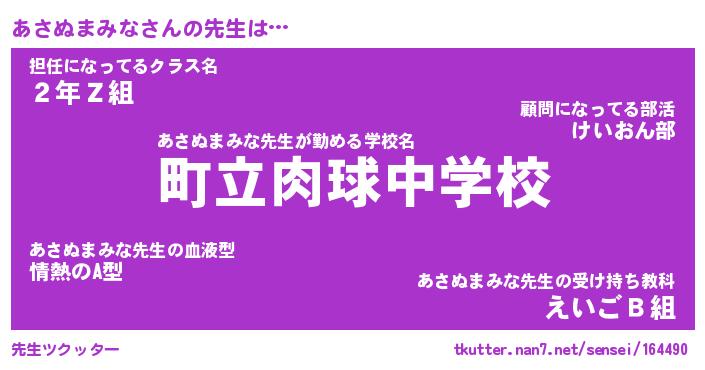 | ヘコむあだ名 | 『あさふぇ~』『なまこ酢』『あさお』 |