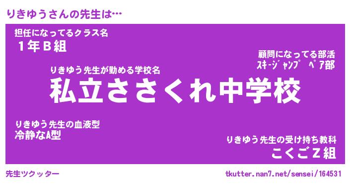 | ファンタジー風あだ名 | 『リキフェル』『エターナルリキユウー』 |
