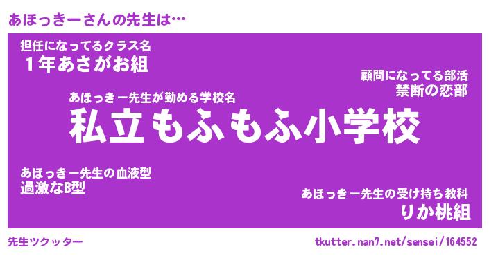 | ヘコむあだ名 | 『あほにゅー』『牛乳』『あほを』 |