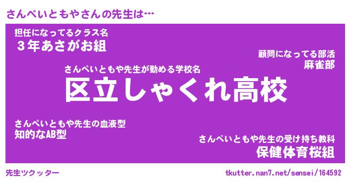 | 肩書あだ名 | 『さんぺいともや御曹司』 |
