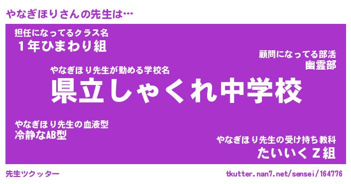 | ファンタジー風あだ名 | 『ヤナフェル』『エターナルヤナギホリー』 |