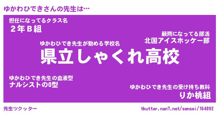 | ヘコむあだ名 | 『ゆかっふぃ~』『豆乳』『ゆかっぺ』 |