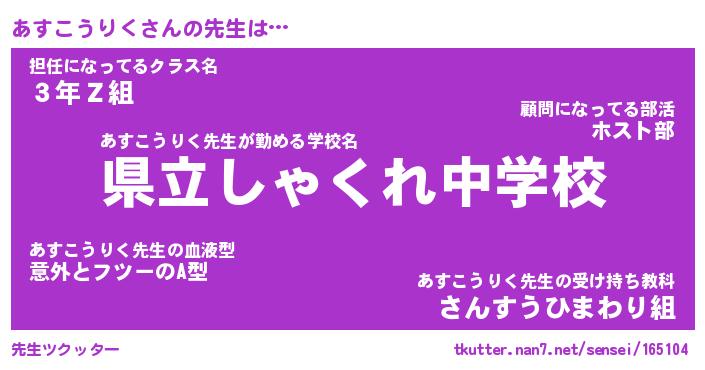 | 伝説のあだ名 | 『不死鳥のスナイパーあすこうりく』 |