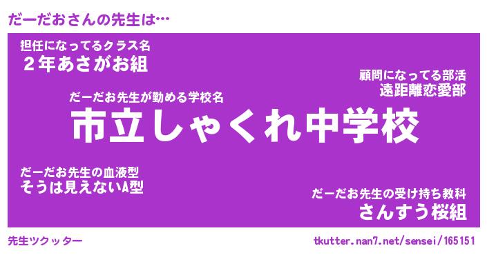 | 意味不明あだ名 | 『ペロリンだーだお』『永久保存だーだお』 |